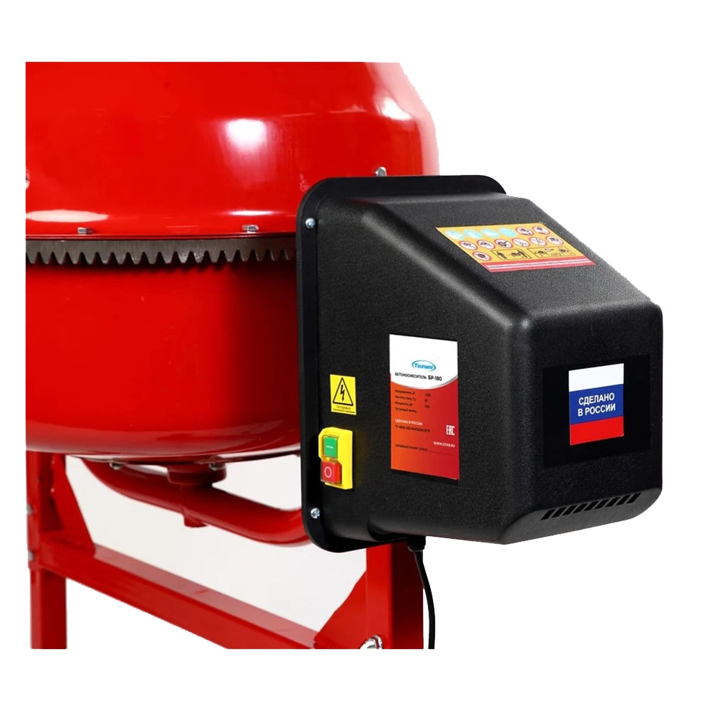 Бетономешалка БР 200М 1200ВТ чугунный венец Tsunami - используют во время строительных, ремонтных и отделочных работ для приготовления подвижных бетонных растворов и штукатурных смесей. Питание осуществляется от сети напряжением 220 В. Бак изготовлен из стали высокого качества, что гарантирует долгий срок эксплуатации при сильных нагрузках. Агрегат покрыт устойчивой к износу порошковой краской. Опорная рама и чугунный венец отличаются устойчивостью к механическим повреждениям.
