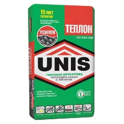 Теплосберегающая армированная гипсовая штукатурка для сплошного (от 5 до 50 мм) и частичного (до 70 мм) выравнивания поверхностей стен и потолков (до 30 мм) внутри отапливаемых жилых и общественных помещений с нормальной влажностью под последующую декоративную отделку: оклейку обоями, окрашивание, укладку керамической плитки и др..