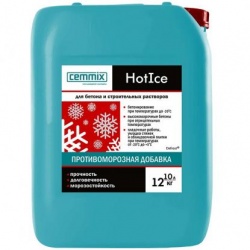 Цеммикс Hotice обладает комбинированным противоморозным, ускоряющим, пластифицирующим действием. Добавка разработана для применения при проведении бетонных работ в условиях отрицательных температур. Добавка ускоряет твердение бетона, легко пластифицирует и улучшает подвижность рабочего раствора. Позволяет получить высокоподвижные бетонные смеси, снизить трудозатраты на обработку и кладку бетона, снижает количество воды в бетонной смеси, повышает степень реагирования цемента, прочность и долговечность бетонных изделий.