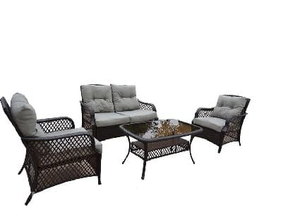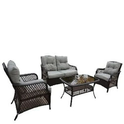 Комплект складной мебели предназначен специально для уличного использования. В состав набор входят прямоугольный столик из изкуственного ротанга со стеклянной закаленной столешницей (5 мм), 2 удобных широких кресла с мягкими подушками (10 см) и двухместный диван. Комплект мебели - один из лучших наборов в нашем ассортименте, благодаря низкой цене, привлекательному дизайну и высочайшему качеству мебели. Можно использовать на дачном участке, для уличного кафе или на летней веранде. Комплект поставляется в разобранном виде. Стол: вес: 14 кг; материал: сталь, искуственный ротанг.