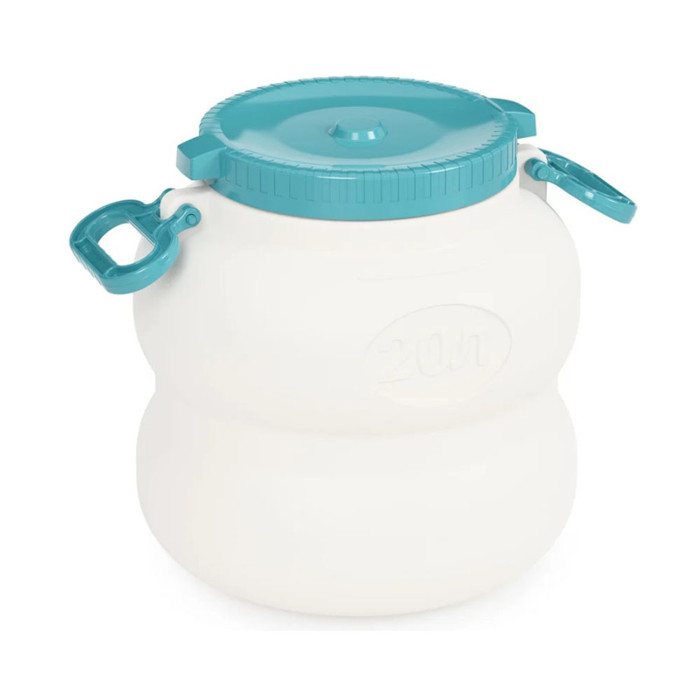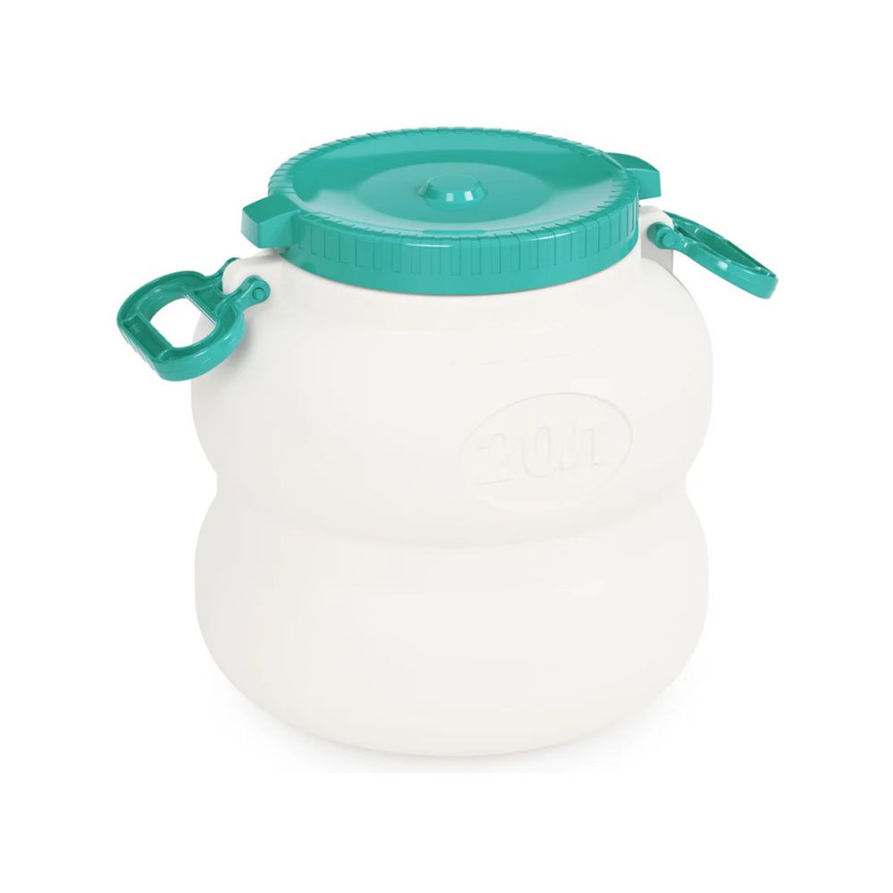 Канистра-бочка 20 л с крышкой и ручками Байкал М6225 - изготовлена из прочного пищевого пластика и предназначена для транспортировки и хранения пищевых жидкостей. Изделие безопасно для здоровья, герметично, устойчиво к растрескиванию, легко очищается и не сохраняет нежелательных запахов. Имеет широкое удобное отверстие, которое плотно закручивается крышкой, а для удобства переноски имеются прочные навесные ручки. Также можно использовать на дачных участках для хранения поливочной воды, компоста и в качестве емкости для сыпучих строительных материалов.