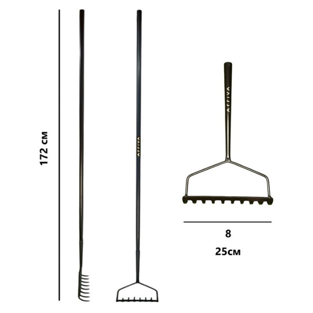 Грабли с увеличенным захватом цельнометаллические 8 зубов ARRIVA - они обладают исключительной прочностью и долговечностью. Благодаря своей форме и расположению, эти 8 зубьев эффективно собирают даже мелкий мусор, не повреждая при этом корни растений или верхний слой почвы. Они легко справятся с влажной листвой, мелким щебнем или скошенной травой, обеспечивая чистоту и порядок на вашем участке.