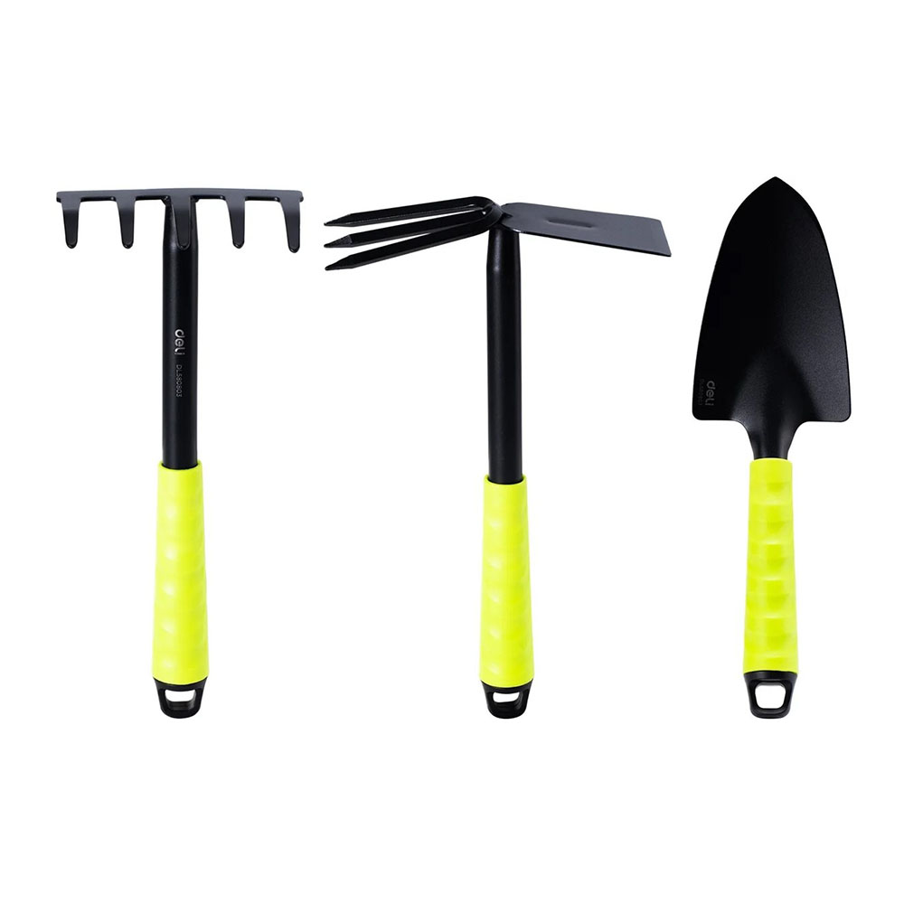 Набор садового инструмента мини 3 предмета DELI DL580803 - удобные и прочные инструменты для ухода за растениями! В набор входят лопатка, мотыжка и грабли – всё, что нужно для посадки, прополки и рыхления почвы. Инструменты компактные (общая длина – 31 см), но прочные: толстый металл с порошковым покрытием не гнётся и не ржавеет, а удобные ABS-рукоятки не скользят в руках.