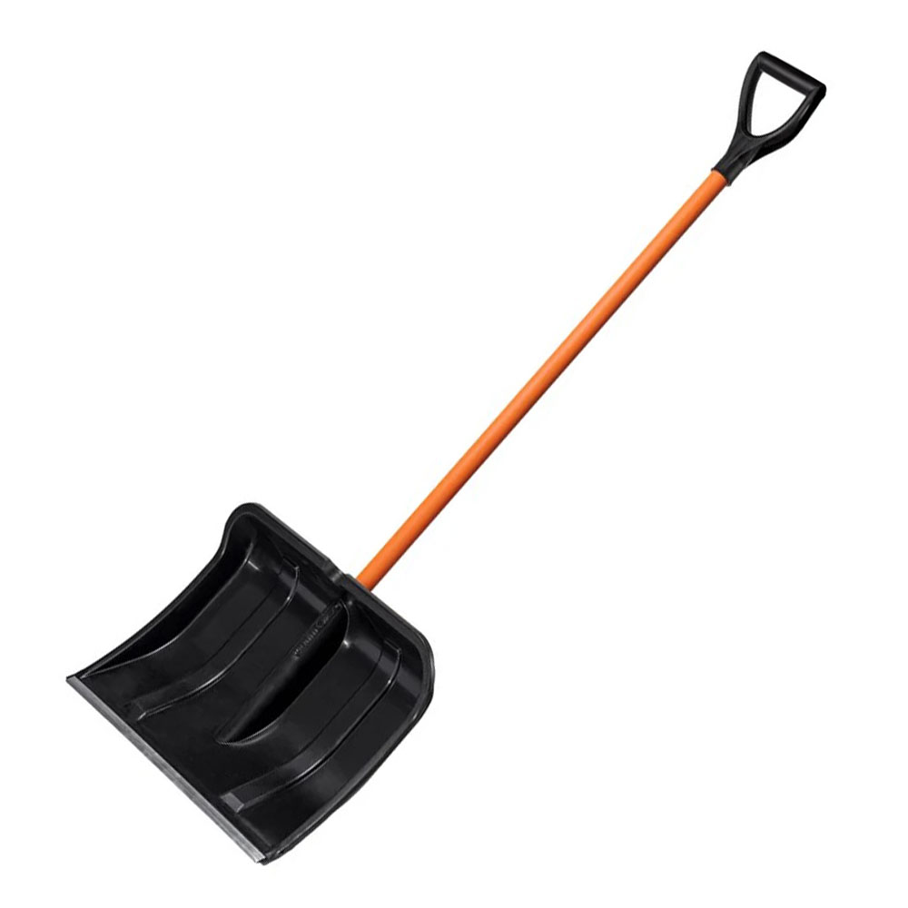 Лопата снеговая Богатырь с алюминиевым черенком и ручкой - имеет очень большой и глубокий ковш, за счет чего обеспечивается эффективная расчистка больших площадей от снега. Ковш выполнен из прочного композиционного пластика, который не трескается на морозе. Также ковш дополнительно усилен ребрами жесткости и П-образной кромкой в 10 мм. Лопата поставляется в сборе с защитной алюминиевой планкой по рабочей кромке ковша, с металлическим черенком и удобной V-образной ручкой.