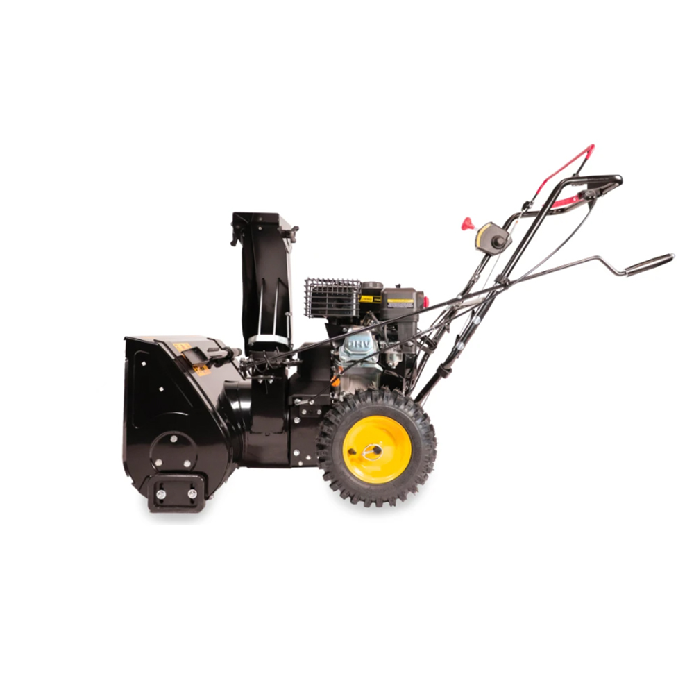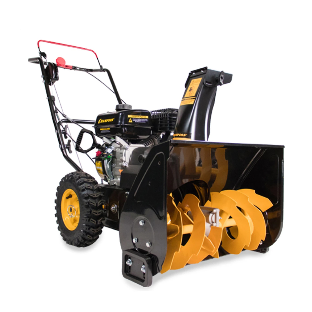 Снегоуборщик Champion ST556 с приводом на колеса эффективен для уборки большого количества снега. Оборудован двигателем с OHV, который обеспечивает быстрый запуск и экономию топлива. Высоту ковша можно регулировать при помощи специальных лыж. Зазубренный шнек измельчает даже слежавшейся снег. Желоб может вращаться в диапазоне от 0 до 180 градусов. Колеса обеспечивают достаточное сцепление с поверхностью. На верхней части ковша расположена лопатка для очистки желоба. Рычаг переключения передач находится на рукоятке.