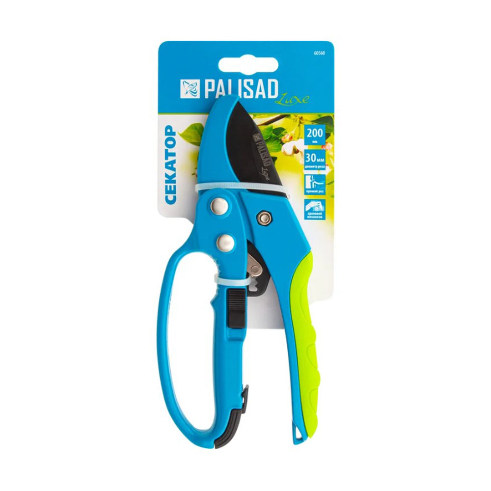 Секатор 200 мм с храповым механизмом PALISAD - используется для обрезки живых, сухих и увядших веток диаметром до 30 мм. Храповой механизм обеспечивает пошаговый рез, поэтому лезвия инструмента не сминают ветку, причиняя минимальный вред растению. Опорное лезвие способствует надежному удержанию ветки во время использования секатора. Регулировочный винт позволяет изменять плотность смыкания лезвий. Инструмент будет полезен для ухода за растениями на даче и в саду.