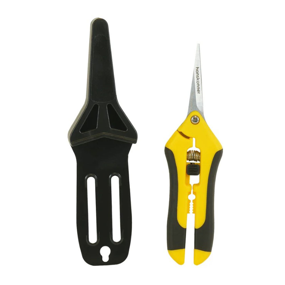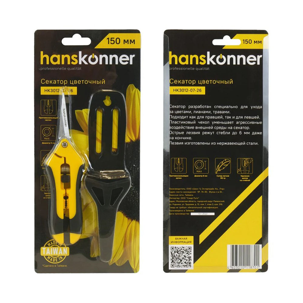 Секатор цветочный 150 мм Hanskonner - подходит при работе в цветниках, миксбордерах, флористических магазинах, в теплицах, оранжереях. Узкие, удлиненные лезвия обеспечивают точность реза даже у самых нежных растений. Безопасность. Специальная форма ручек позволяет зачищать стебель от шипов, листьев. Инструмент не затеряется среди листьев благодаря яркому дизайну. Предусмотрен чехол для безопасного хранения и транспортировки.