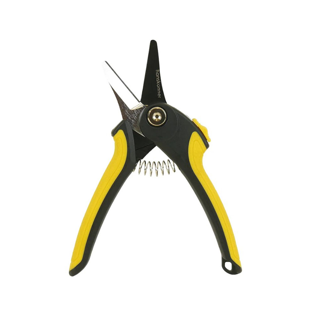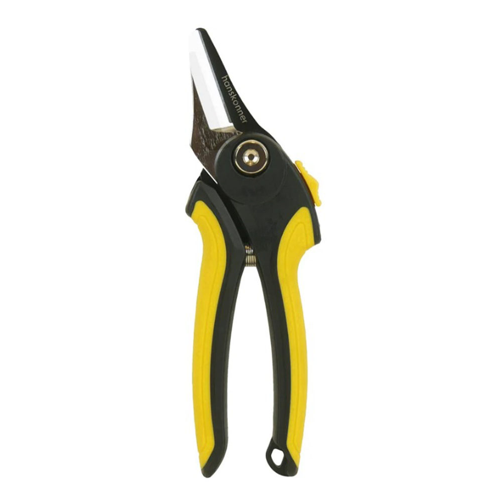 Секатор цветочный 180 мм с тефлоновым покрытием Hanskonner - редставляет из себя инструмент для обрезки и ухода за садом, миксбордером, цветниками. Оснащен лезвием, которое расположено под углом к основной оси ручек. Благодаря этому удобно работать с цветами, тонким ветвями. Верхнее лезвие из стали SK5 с защитой от прилипания. Удобный замок блокировки на ручке позволяет перевести изделие в закрытое состояние одной рукой для безопасного хранения и переноски. Эргономичная конструкция рукоятки обеспечивает легкий и точный рез.