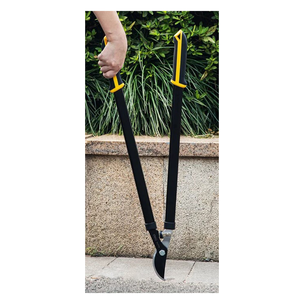 Сучкорез садовый 670 мм DELI DL2779 - предназначен для плавной и удобной обрезки веток и сучков, кроны деревьев, кустарников и живой изгороди, прививки, для цветов и растений. Максимальный диаметр резки - 30 мм. Инструмент изготовлен из высококачественной стали 55С с тефлоновым покрытием, которое не только обеспечивает защиту материала лезвия от коррозионного воздействия, повышая срок службы секатора, но и предотвращает прилипание мусора. Эргономичные ручки с противоскользящими прорезиненными накладками удобно лежат в руке во время работы и не дают инструменту выскользнуть. Ручки оснащены специальными отверстиями для подвесного хранения.