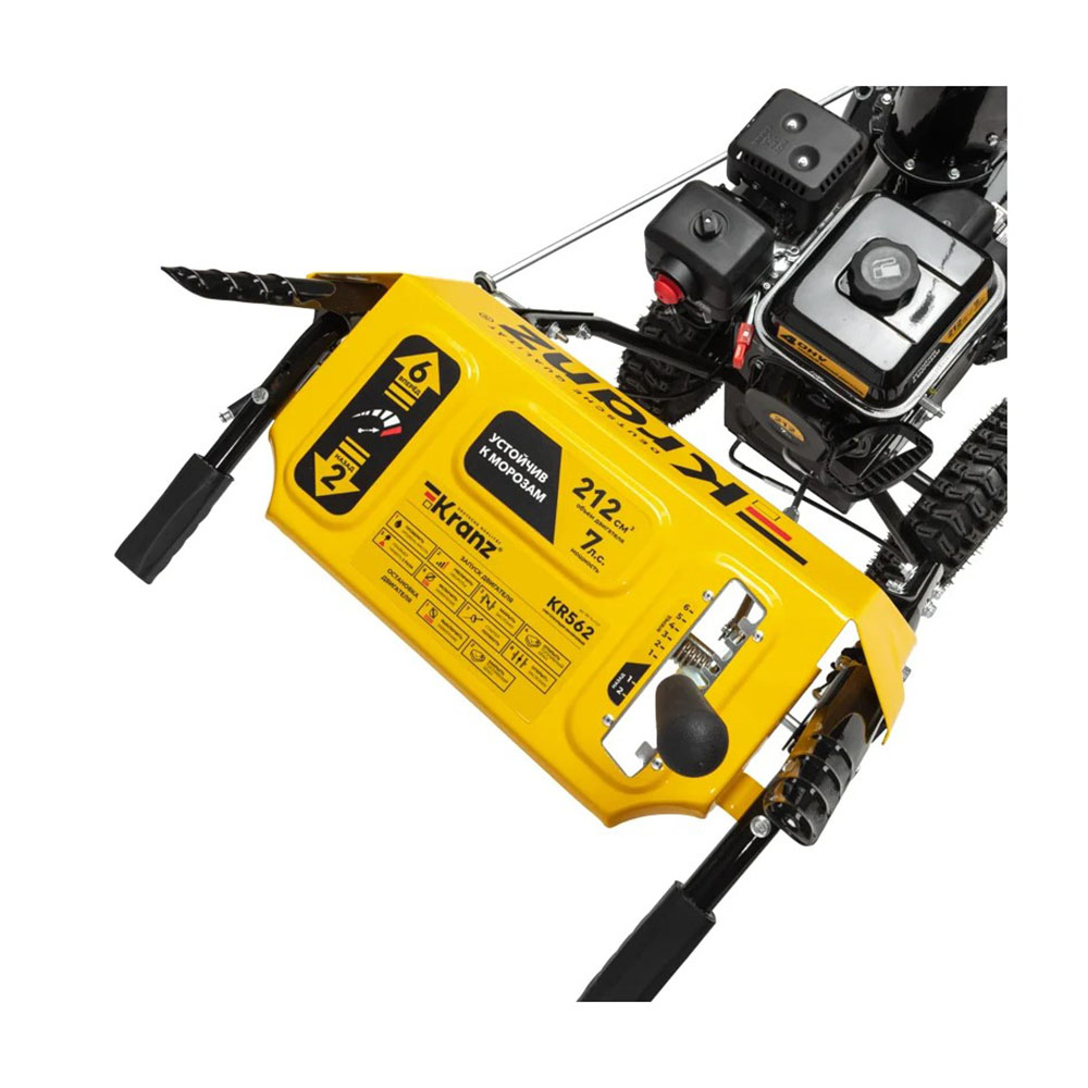 Снегоуборщик Бензиновый KR562 KRANZ - предназначен для уборки снега с дорог, тротуаров и проездов. Благодаря мощным шнекам-ледорубам справляется с любым типом снега, включая слежавшийся и обледенелый. Оснащен 4-х тактным двигателем мощностью 7 л.с., обеспечивающим высокую производительность и эффективность работы. Шины с глубоким протектором облегчают перемещение по снегу и скользким поверхностям. Ковш шириной 56 см и высотой 54 см захватывает большой объем снега и откидывает на расстояние до 12 м. Возможность поворота желоба на 190 градусов позволяет легко и точно направлять выбрасываемый снег в необходимую сторону. Быстрый выброс и увеличение дальности снега достигаются с помощью эффективной двухступенчатой системы. Снегоуборщик имеет 6 скоростей вперед и 2 скорости назад, что позволяет выбрать наиболее подходящую скорость для работы в разных условиях. Легкая регулировка скорости движения достигается благодаря надежной трансмиссии с фрикционным диском. Для максимального комфорта пользователя руль может быть отрегулирован по высоте.