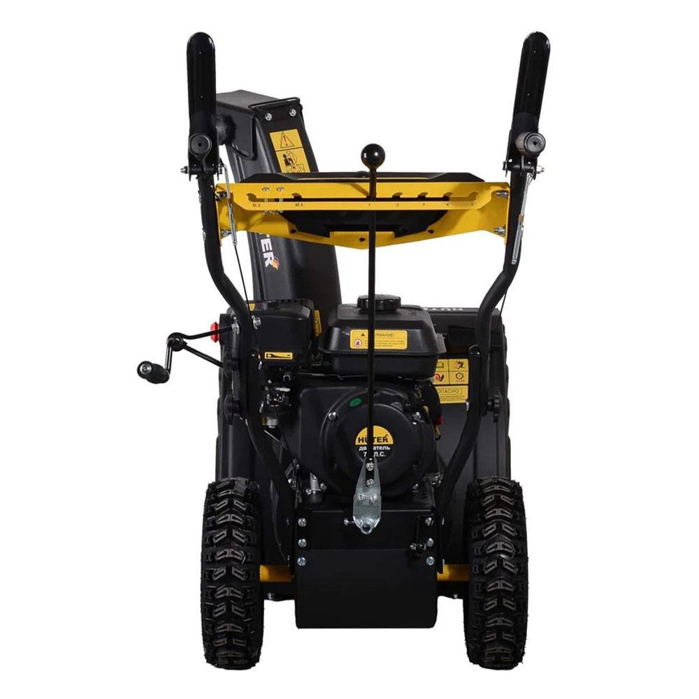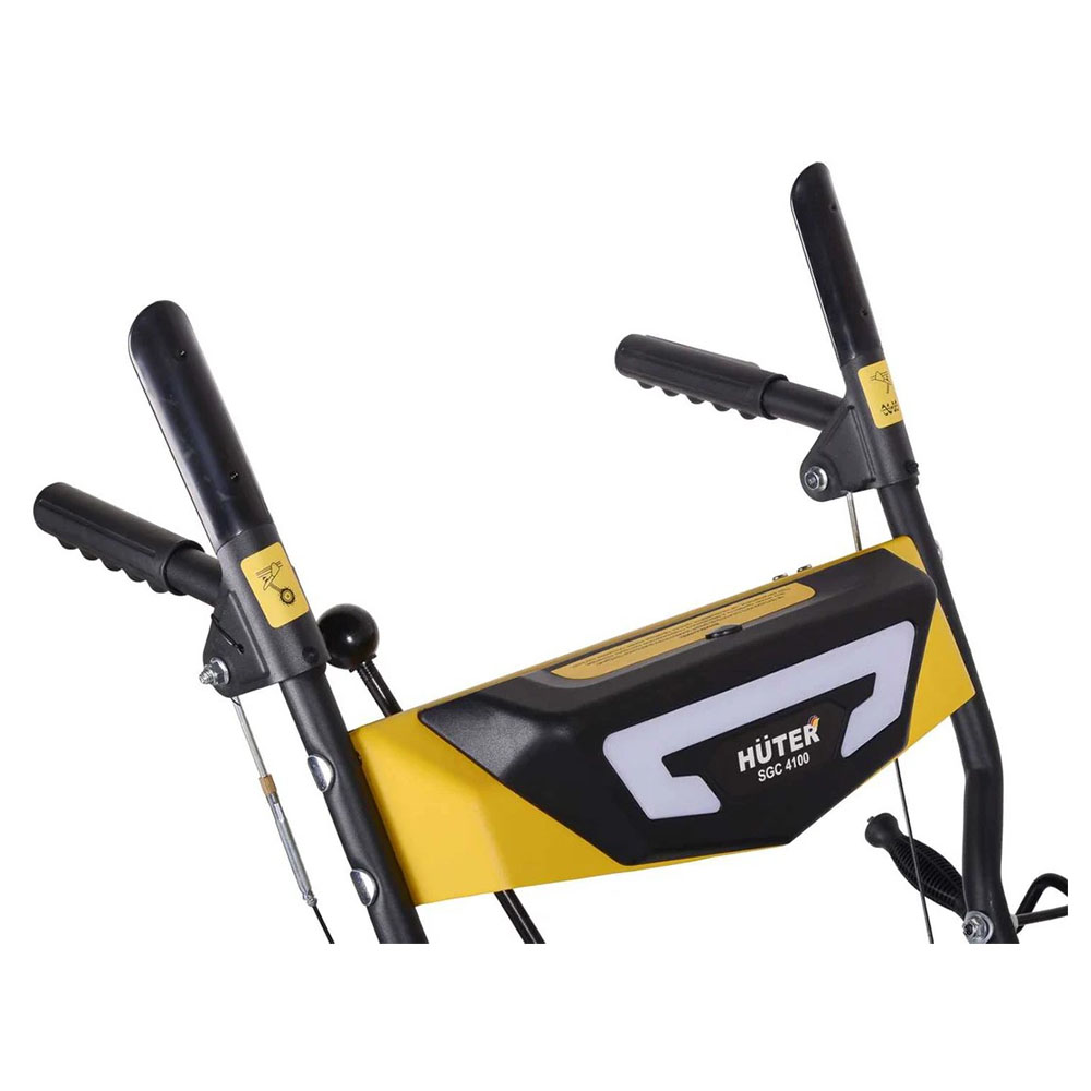 Снегоуборщик Huter SGC 4100 70/7/1 - уборка снега на приусадебном участке будет занимать минимум времени и сил, если приобрести снегоуборочную машину с бензиновым приводом HUTER SGC 4100. Снегоуборщик оснащён бензиновым двигателем мощностью 7 л.с. и семью скоростями (5 – вперёд и 2 – назад). Ширина захвата при одном проходе составляет 56 см. А высота захвата составляет 54 см. Высота подъема ковша регулируется металлическими башмаками. Объём топливного бака – 3.6 л. Рабочим органом модели HUTER SGC 4100 является шнек спиралевидной формы из прочной углеродистой стали, поэтому снегоуборщик способен справляться со слежавшимся снегом, настом и даже кусками льда. Загребаемый снег выбрасывается через специальный жёлоб на 15 метров в сторону. Дальность выброса регулируется посредством наклона отражателя. Поворачивать желоб можно на 190° прямо в процессе работы. Модель обладает хорошей манёвренностью и устойчивостью на скользкой поверхности благодаря крупным колёсам с агрессивным протектором. Вес снегоуборщика – 71 кг.
