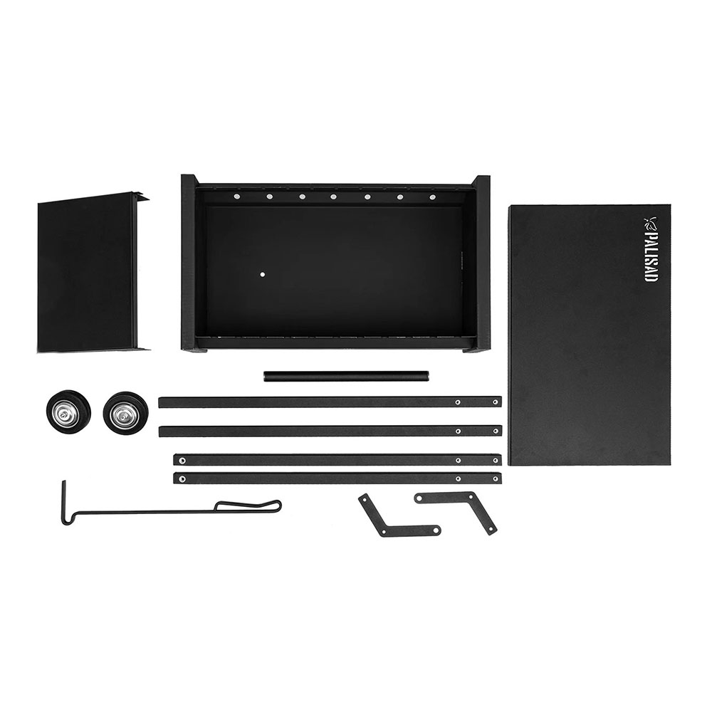 Мангал сварной на колесах 662х390х152/805 мм кочерга в комплекте PALISAD Camping - предназначен для приготовления мяса, птицы, рыбы, овощей на открытом воздухе с использованием древесного угля или дров. Позволяет организовать пикник и комфортный отдых на дачном участке. Ребра жесткости повышают прочность мангала и продлевают срок его эксплуатации. Отверстия для циркуляции воздуха обеспечивают приток кислорода, а значит, угли лучше разгораются и огонь не нужно раздувать У мангала имеются прорези, благодаря которым шампуры не перекатываются и не падают.