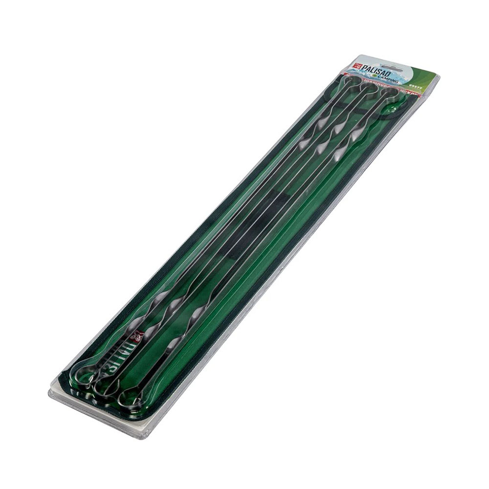 Шампура в чехле 60 см 6 шт PALISAD Camping - позволяют легко приготовить мясо, рыбу и овощи на мангале. Пригодятся во время отдыха на даче или пикнике.Прочность и долговечность — упругие шампуры толщиной 1,5 мм не деформируются под тяжестью продуктов. Многократное использование — нержавеющая сталь не разрушается даже при частом мытье. Комфортное использование — заостренные окончания легко протыкают мясо, а винтовые ручки не прокручиваются на мангале. Удобное хранение и транспортировка — шампуры поставляются в комплекте с чехлом. Продуманная комплектация — 6 шампуров достаточно, чтобы приготовить обед для небольшой компании.